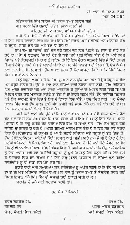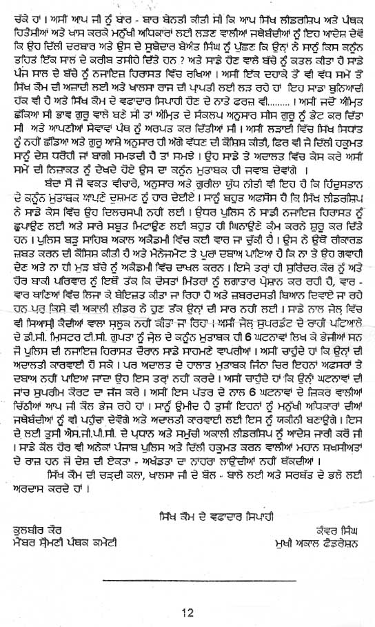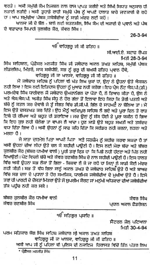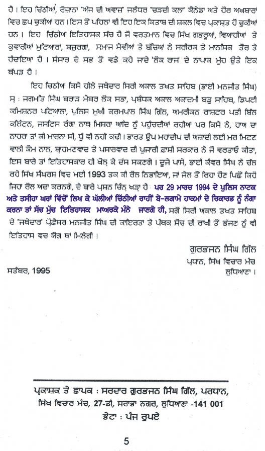 Copyright © Balbir Singh Sooch, Chief and Spokesperson, Sikh Vichar Manch, Ludhana, Punjab (India)
